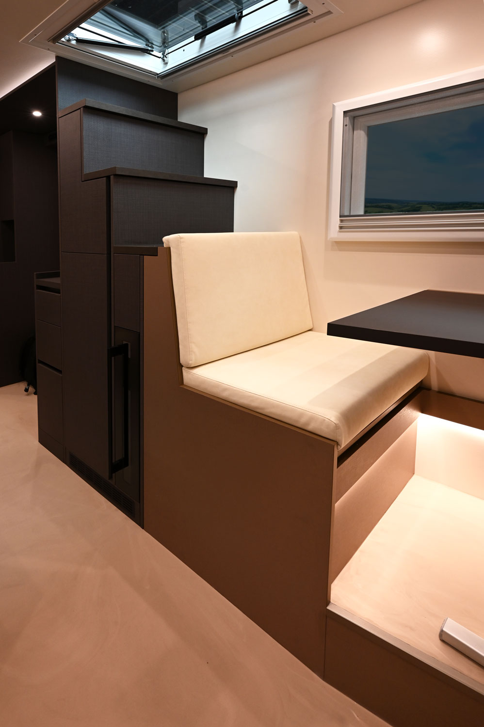 Interior: The camper unit features a luxurious, exclusive, and thoughtfully designed living space where comfort is paramount. The unit is equipped with a wide range of high-quality amenities, including heating, an extensive water system, cooking facilities, optimal sleeping comfort, and a full shower and toilet area. In addition, great attention has been given to creating an inviting seating and relaxation area, with every detail designed to ensure an optimal and carefree stay.